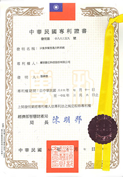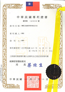 少量多樣型進出料系統專利(智慧型電子標籤),專利發明第088359號。